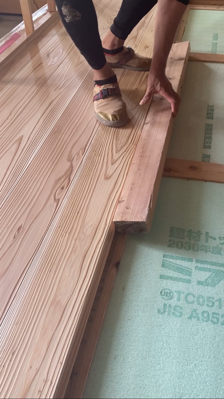 床断熱から床貼り施工中になります。